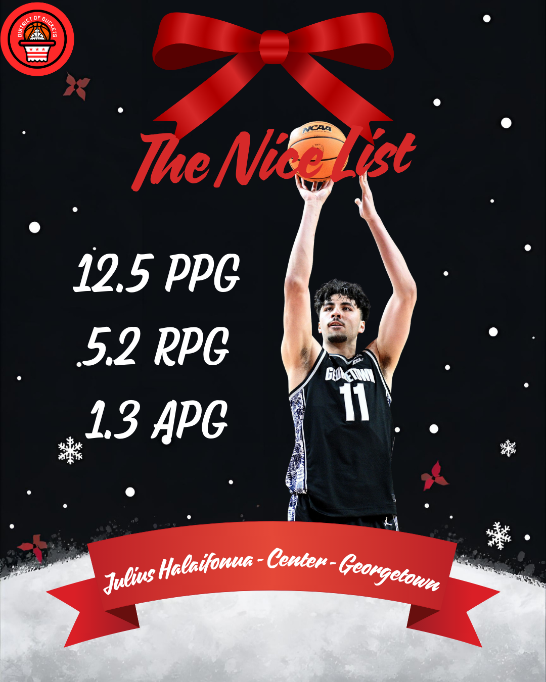 Happy Holidays hoop fans! This is the first edition of the District of Buckets holiday nice list, highlighting hoopers, I’ve covered in person to raise awareness about some names to watch in college basketball after the break.